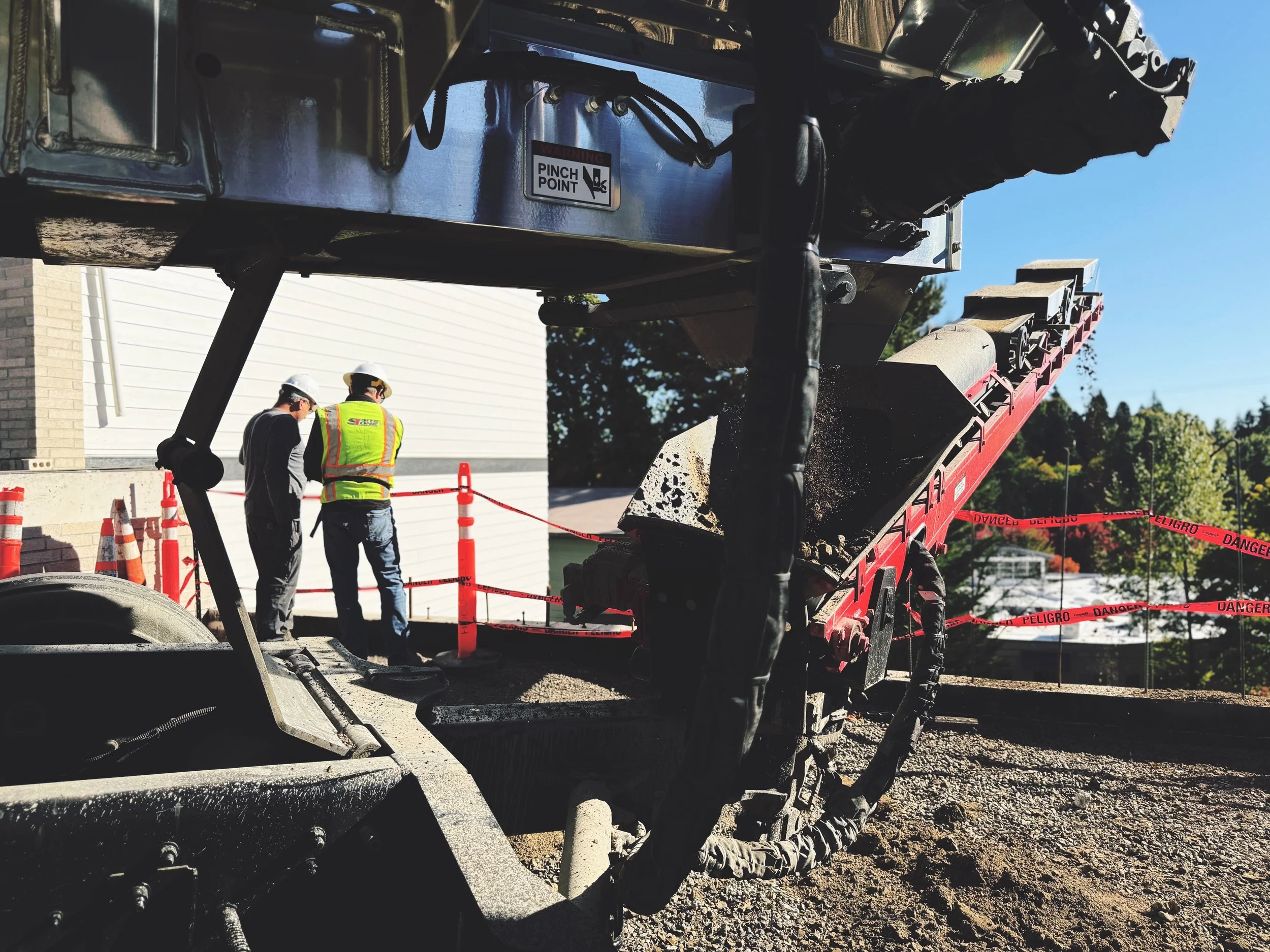 “The remote control means the operator doesn’t have to stay at the truck. He can stand in the foundation and watch exactly where the material is landing — and on slab prep, that’s the difference between close enough and right.”